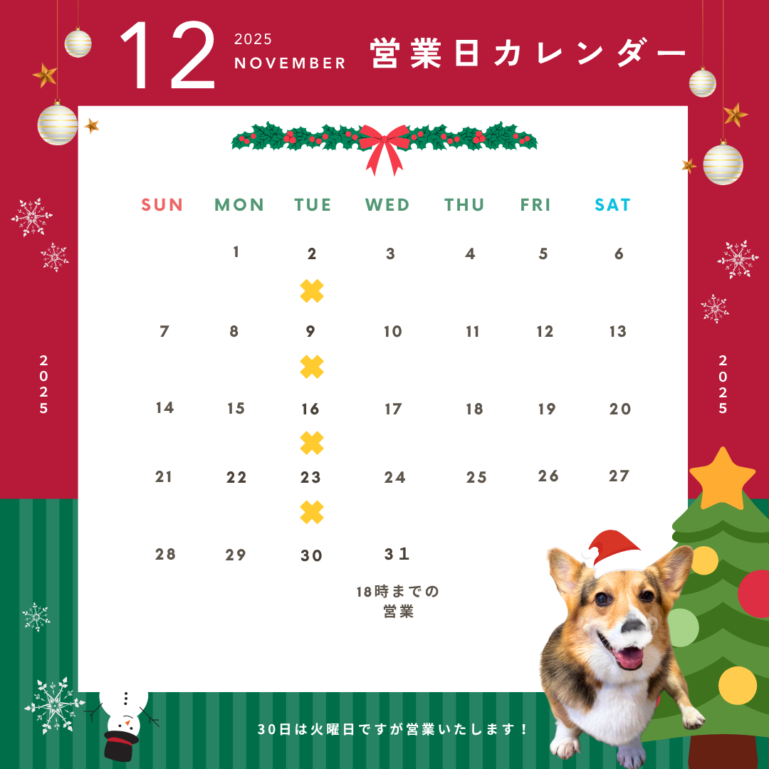 25年11月の営業カレンダー